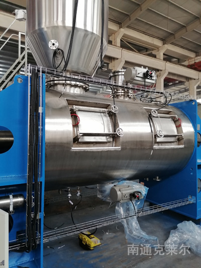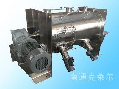 犁刀混合机由圆筒体、传动机构、犁刀、飞刀四部组成;工作时,犁刀做圆周运动,物料被犁刀刀面分流成两个方向形成双向物料流,与两侧犁刀分流过来的物料相互交叉形成对流,当物料流经高速飞刀时又被高速飞刀叶片剪切和抛洒,从而在较短时间内达到均匀混合。本机的混合精度高,混合时不产生离析,尤其对于容易团聚的物料,可以起到解聚和打散的作用。
