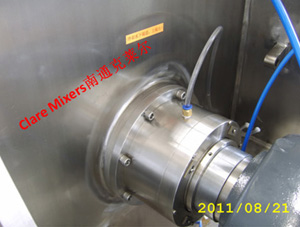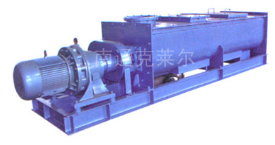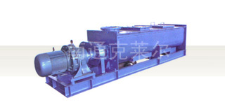 连续式混合机由机壳、转轴、搅拌器、减速机、上盖组成,壳体一侧可以配置快开门,供检修用,桨叶与轴用螺栓螺母联接,桨叶角度可调。