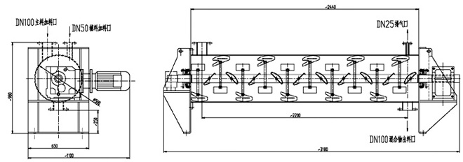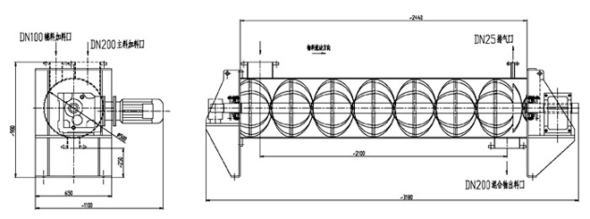 1、混合效果好、又可连续工作: 在轴上按一定规律设置了一定数量反向叶片